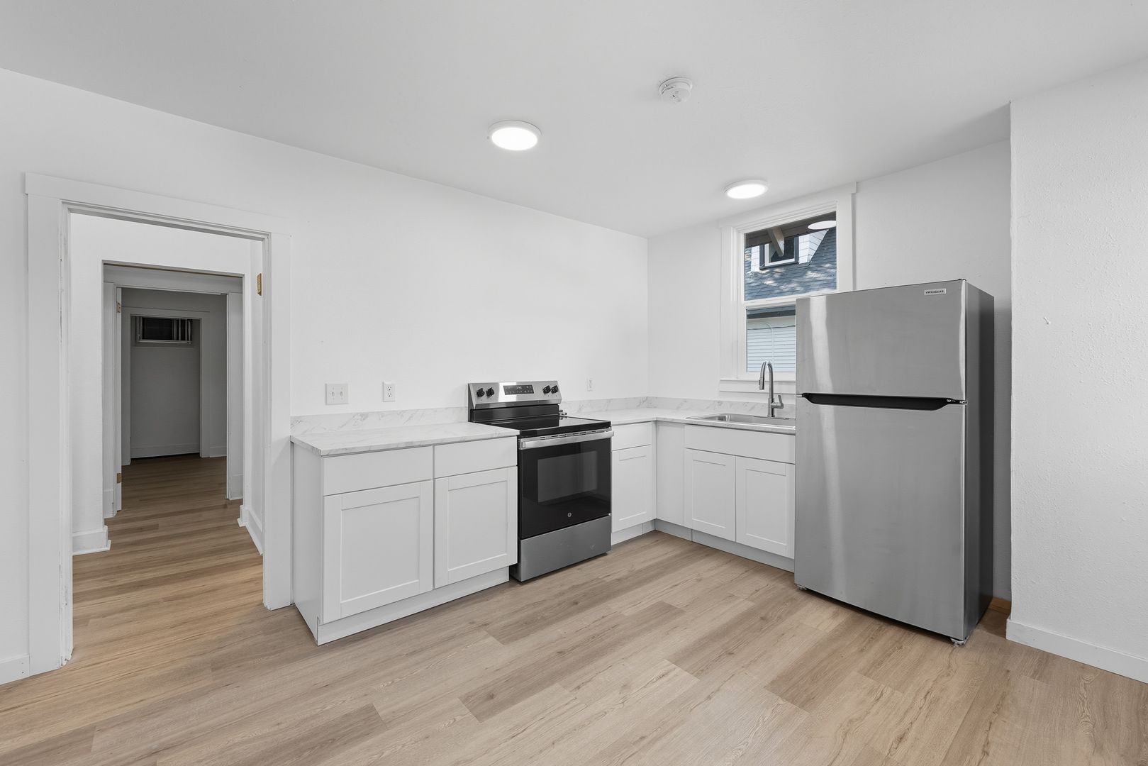 Discover comfort and modern living at 1308 W. Nora Ave, Unit 1, a beautifully remodeled 2-bedroom, 1-bath apartment located in the heart of Spokane. This spacious main-floor unit has been thoughtfully updated throughout, offering fresh finishes, bright natural light, and a layout that feels both open and cozy. The kitchen features updated cabinetry along with a modern fridge and oven/stove, making meal prep easy and enjoyable. An in-unit washer and dryer adds incredible convenience—no more shared laundry or trips to the laundromat.