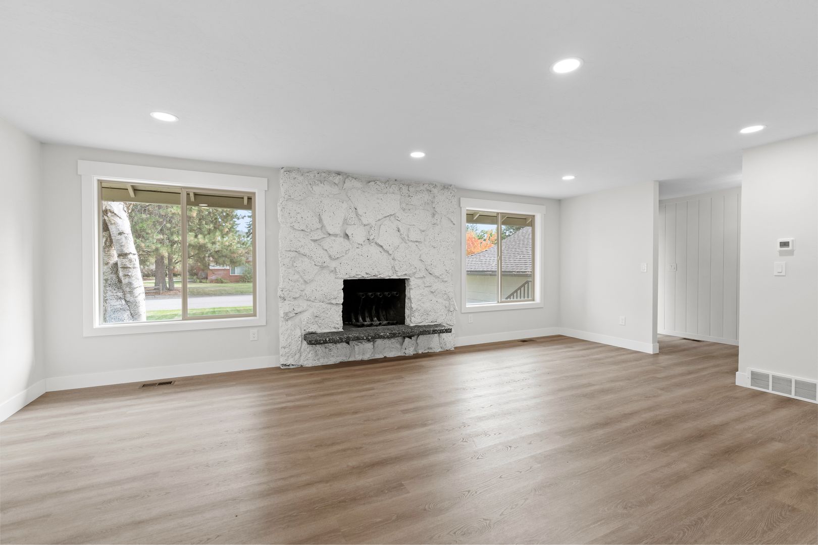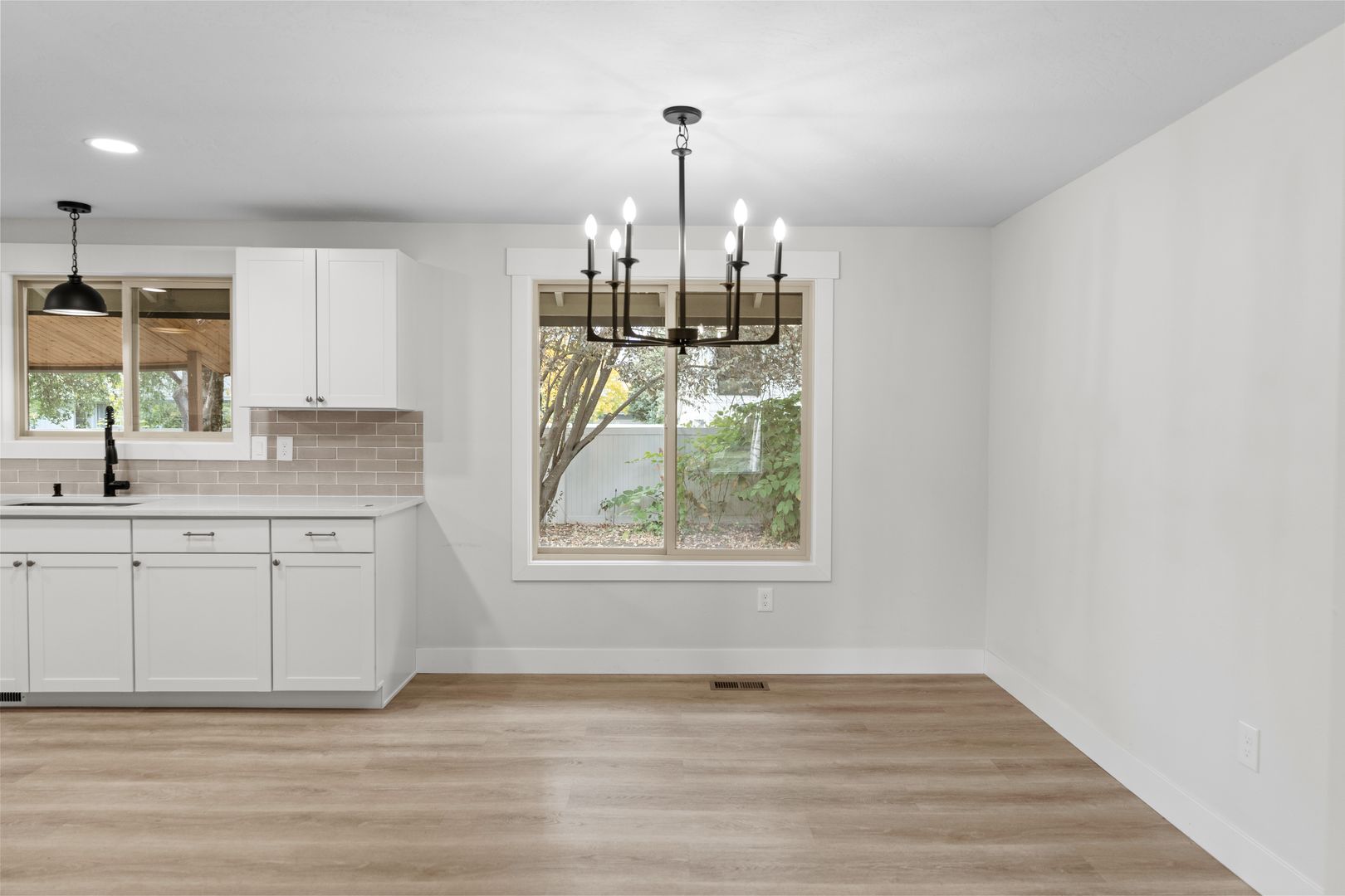 This masterfully updated home boasts four spacious bedrooms, three tastefully updated bathrooms, and an airy open-concept living space perfect for entertaining guests or simply enjoying a relaxing night in. The picturesque backyard is a true oasis, complete with a covered patio, lush greenery, a conversation pit, and plenty of room for outdoor activities. Primary suite with beautifully updated bathroom and double closets. Brand new flooring throughout!